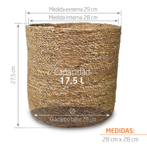 Cesta Cilindro de Algas Marinas 28 x 28 cm: Amplitud y Textura Natural La Cesta Cilindro de Algas Marinas 28 x 28 cm es una pieza artesanal que apo...