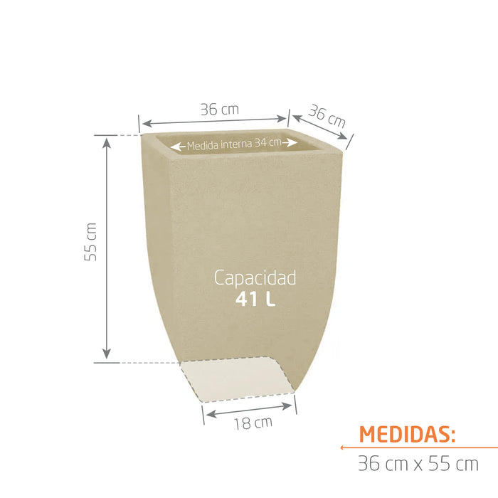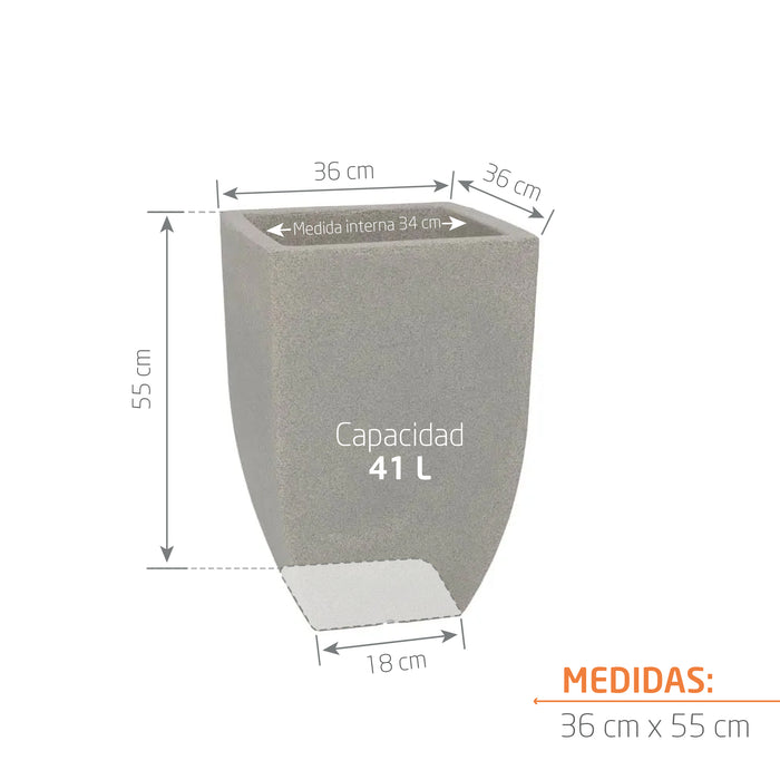 * Medidas matera: 36 cm Largo x 36 cm Ancho x 55 cm Alto.