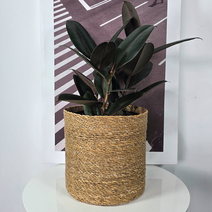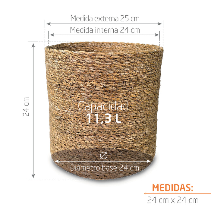 La Cesta Cilindro de Algas Marinas 24 x 24 cm es una pieza artesanal que aporta carácter y calidez a tus espacios. Tejida a mano con fibras de algas marinas 100% naturales, combina resistencia, ligereza y una estética única que respeta el medio ambiente. Perfecta para cubrir materas de tamaño medio, almacenar objetos o lucir como elemento central de tu decoración.
