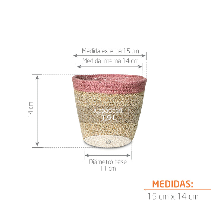Cesta Cilindro de Yute 15 x 14 cm Rosa: Detalles Naturales con Toque Suave