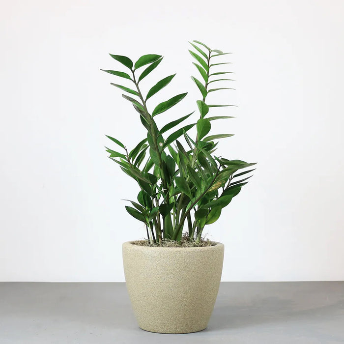 Con una forma redondeada y un acabado texturizado que evoca lo artesanal, esta matera combina belleza, ligereza y funcionalidad en un solo producto.