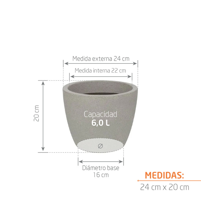 Fabricada con polietileno reciclado y mediante el proceso de rotomoldeo, es resistente, ecológica y muy fácil de manejar. Ideal para plantas pequeñas, suculentas o decoraciones minimalistas que quieren dejar huella.